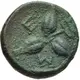 | توضیحات پشت سکه | Three barley-grains radiating from center; kerykeion between two grains. |