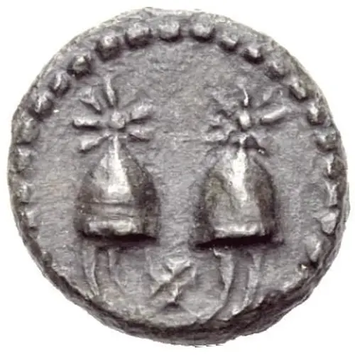 | توضیحات روی سکه | Caps of the Dioskouroi; XI below. |
