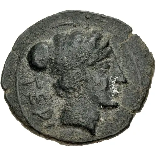 | توضیحات روی سکه | Head of nymph (Terina) right. |