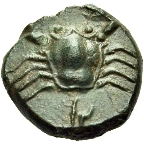 | توضیحات روی سکه | Crab; gl in punic letter below. |