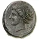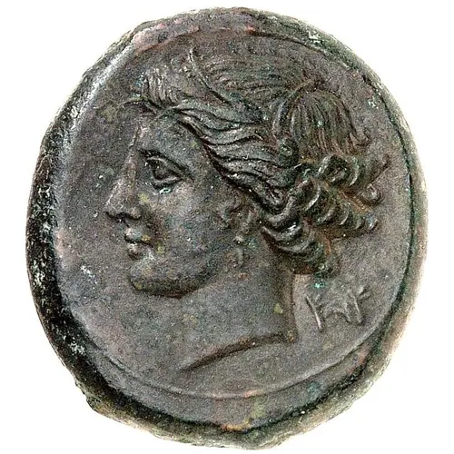 | Descripción del anverso | Wreathed head of Persephone left, Punic `ziz` behind head. |