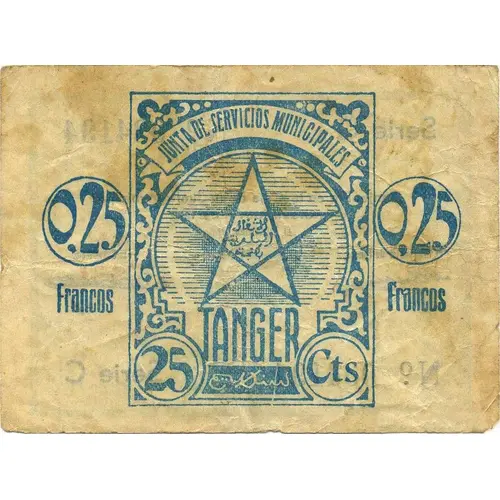 | 背面铭文 | SERVICIOS MUNICIPALES 0.25 FRANCOS 0.25 FRANCOS TANGER |