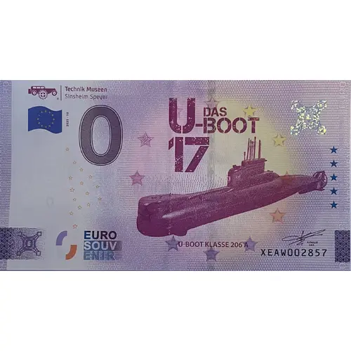 Technik museen Sinsheim Speyer E U R O S O U V E N I R 2025-10 0 U-BOOT DAS 17 EURO SOUV ENIR U-BOOT KLASSE 206 A R. FAILLE C.E.O XEAW |