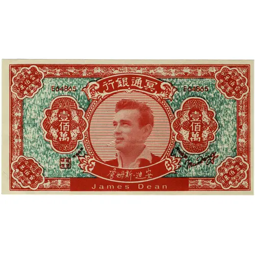 | Vorderseitenlegende | 冥通銀行 壹佰萬 詹姆斯迪安 James Dean (Translation: Hell Bank One Million) |