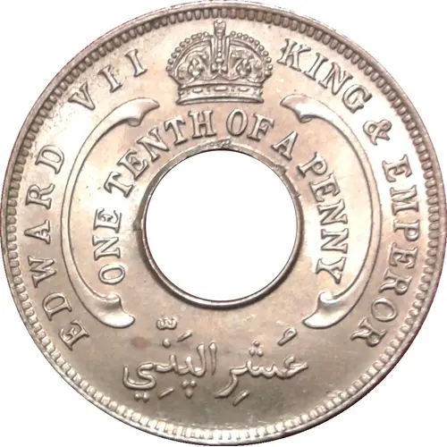Légende de l’avers EDWARD VII KING & EMPEROR ONE TENTH OF A PENNY عُشِر الپَنِي