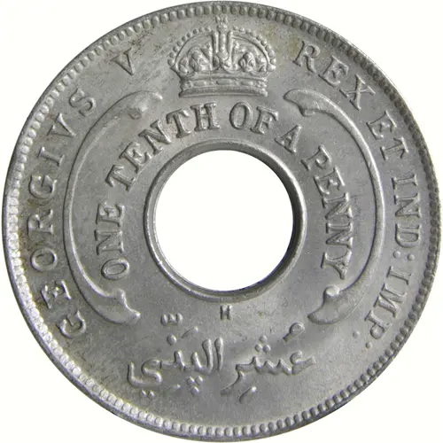 | Légende de l’avers | GEORGIVS V REX ET IND:IMP: ONE TENTH OF A PENNY عُشِر الپَنّي |
