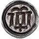 | Descrizione del dritto | Four capped vertical strokes with forked bases, the two central ones conjoined, joined crescents above, cross below. |