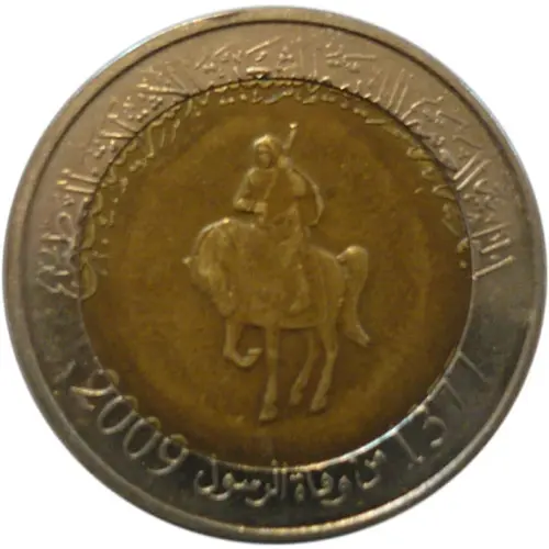 | Obverse lettering | الجماهرية العربية الليبية الشعبية الإشتراكية العظمى 2009 من وفاة ارسول 1377 (Translation: The Great People`s Socialist Arab Libyan Jamahiriya 1377 after the death of the prophet 2009) |
