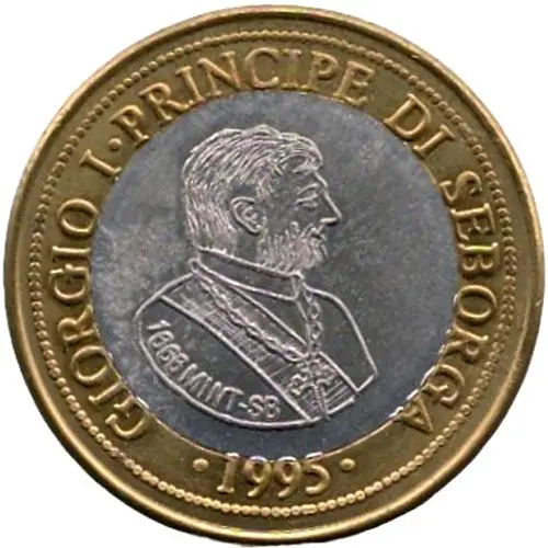 | Légende de l’avers | GIORGIO I PRINCIPE DI SEBORGA 1666 MINT-SB • 1995 • |