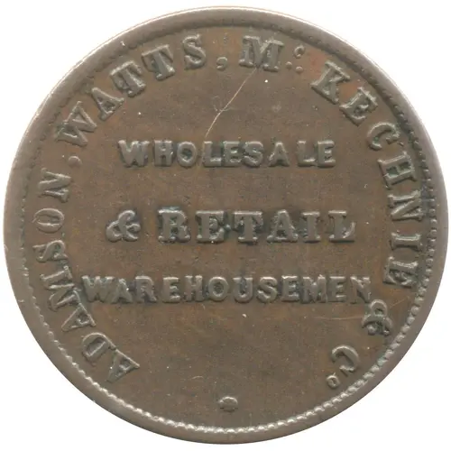 | Надписи аверса | ADAMSON,WATTS,Mc..KECHNIE & Co + WHOLESALE & RETAIL WAREHOUSEMEN |