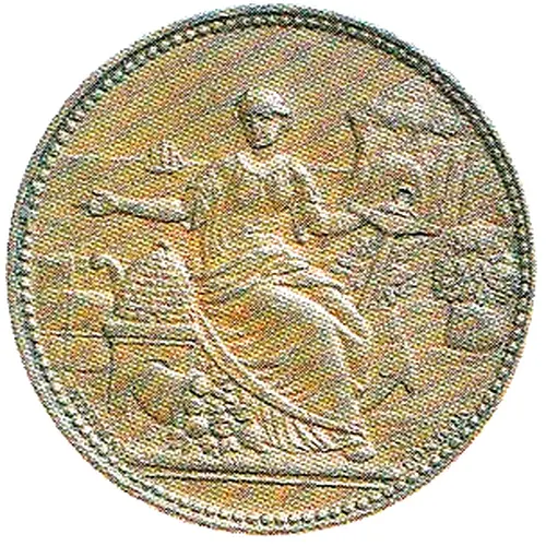 | Obverse description | Female seated with anchor, beehive and cornucopia, ship in background |