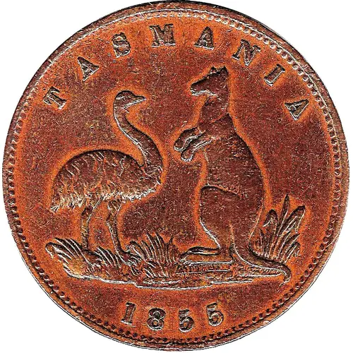 | Obverse lettering | TASMANIA 1855 |