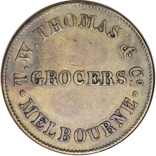 | 正面铭文 | T. W. THOMAS & C° GROCERS: MELBOURNE |