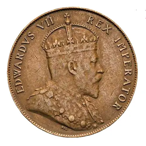 | Описание аверса | Crowned bust to right. DeS (=De Saulles) in relief below and in circle inscription: EDWARDVS VII REX IMPERATOR |