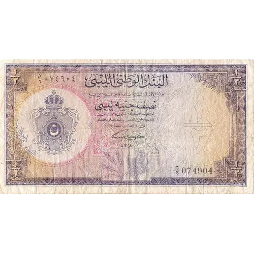 | نوشتههای روی اسکناس | National Bank of Libya half lybian pound |