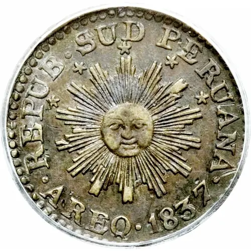 | Obverse lettering | REPUB SUD PERUANA AREQ 1837 |