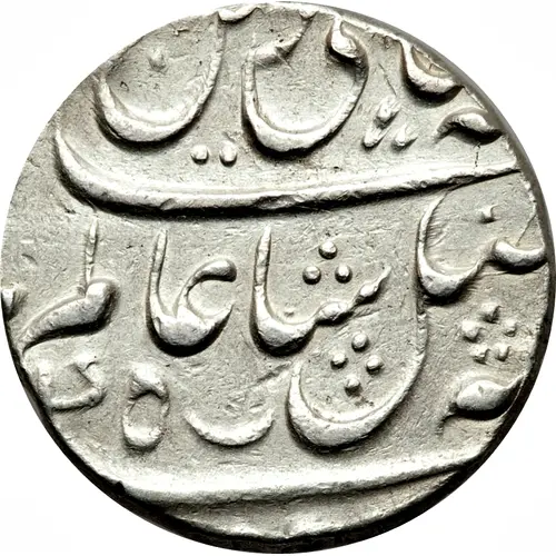 | Opis rewersu | Legend in Persian (partly off flan):Zarb Murshidabad sanat (RY)19 julus maimanat manus |