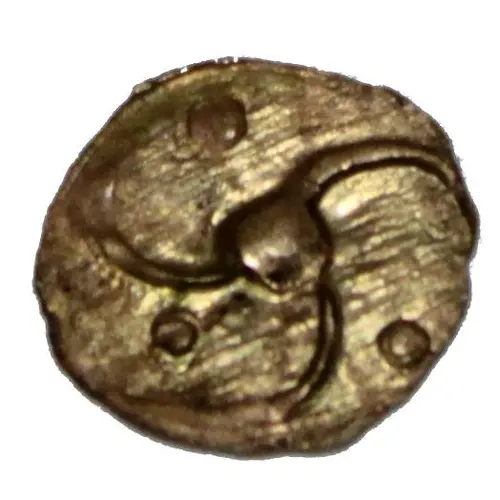 | Obverse description | Thin triskel, each branch separated by a globule, anepigraphe |