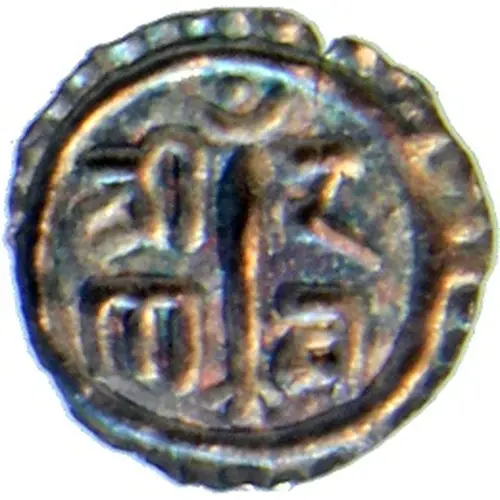 | 表面の説明 | Uniface coin Legend in Devnagari: Shree, Ra, Na, Ba Sword divides lettering Dotted border |