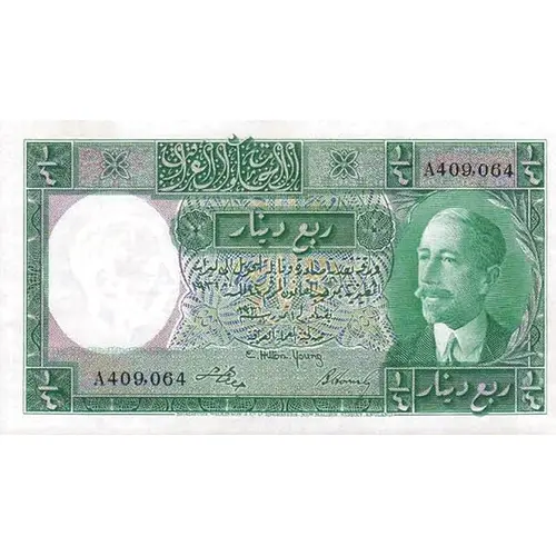 | Rückseitenlegende | GOVERNMENT OF IRAQ QUARTER DINAR CURRENCY NOTE ISSUED AND CONVERTIBLE INTO STERLING, IN ACCORDANCE WITH THE PROVISIONS OF LAW NO 44 OF 1931 BAGHDAD |