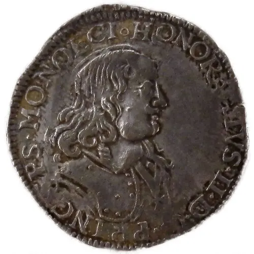 | Mô tả mặt trước | Right cuirassed bust of Prince Honoré II wearing the cordon of the Holy Spirit. |