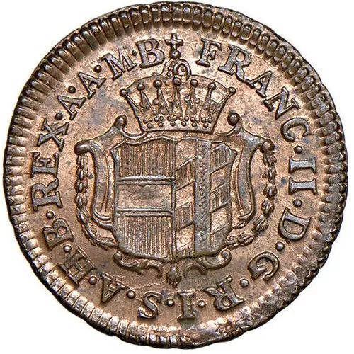 | Opis líce | FRANC. II. D. G. R. I. S. A. H. B. REX. A. A. M. B. |