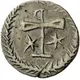 | Reverse description | Backwards and opened staurogram with a star on either side, all surrounded by a wreath. |