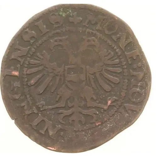 | توضیحات پشت سکه | Long double cross with fleur-de-lis tips, city arms at center |