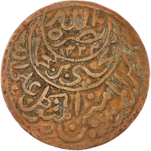 | Aversbeschreibung | NOTE: different varieties exist. Y#3.1 Without `Rabb al-Alamin`, `Sana` below date. Y#3.2 With `Rabb al-Alamin`, `Sana` above date and small `Sana`a` and three leaf ornaments plus star in border legend. Y#3.3 Large `Sana`a` in legend. Arrangements of legends, ornaments, form of the crescent, and size of the circle on reverse exist; weight varies. |