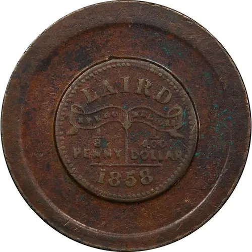 Leyenda del anverso LAIRD SPERO MELIORA 1/8 PENNY 1/400 DOLLAR 1858