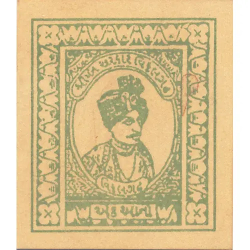 | Obverse description | World War II cash coupon, no date, green, Gujarati script `Vithalgadh` at center and denomination across bottom, portrait Maharaja at center. |