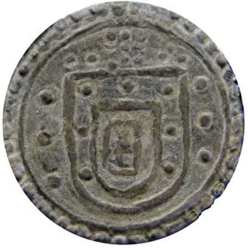 | 正面描述 | Portugal arms topped with cross formed of dots, and surrounded by four triplets of dots. |