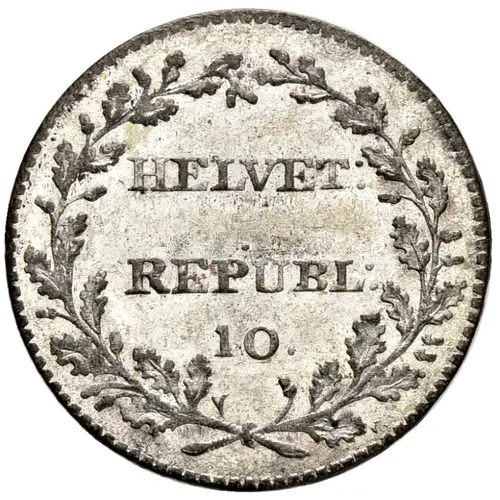 | Obverse lettering | HELVET. REPUBL. 10 B (Translation: Helvetic Republic) |