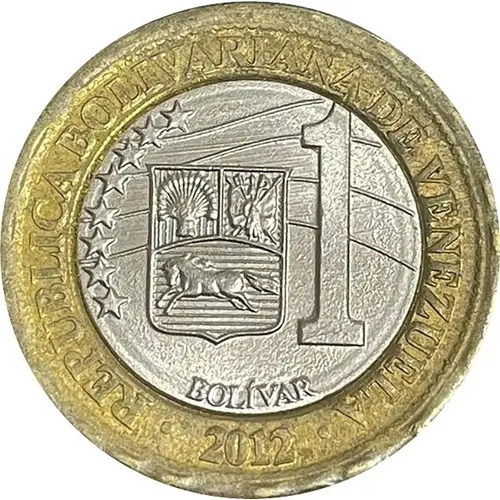 | Надписи аверса | REPÚBLICA BOLIVARIANA DE VENEZUELA 1 BOLÍVAR 2012 (Translation: Bolivarian Republic of Venezuela) |