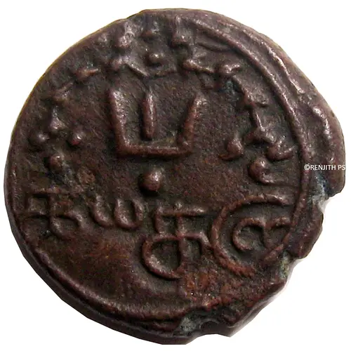 | Obverse description | Trident with date below (Malayalam calendar) 991. The Malayalam calendar was started in 825 AD, making the date on this coin 991+825 = 1815-16 AD |