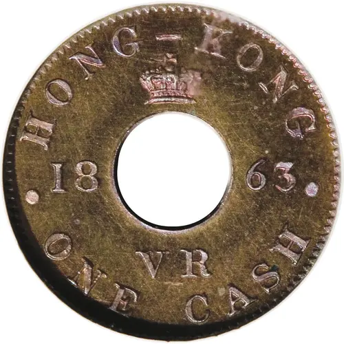 | 正面铭文 | HONG-KONG .18 63. VR ONE CASH (Translation: Victoria Queen) |