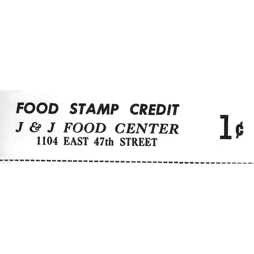 | Légende de l’avers | FOOD STAMP CREDIT J & J FOOD CENTER 1104 EAST 47th STREET 1₵ |