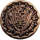 | Opis rewersu | Allegorical shield made up of a Pitirre (Gray Kingbird) holding a cross in his beak, a machete in it`s right claw, a coffee branch in it`s left claw, mythological Taíno Sun at center. Commemorated event on top and sides, near edge, dates below. |