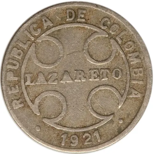 Obverse lettering REPUBLICA DE COLOMBIA LAZARETO * 1921 *