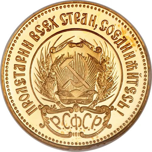 | 表面の銘文 | ПРОЛЕТАРИИ ВСЕХ СТРАН, СОЕДИНѦЙТЕСЬ ! Р.С.Ф.С.Р. (Translation: Workers of the world, unite! RSFSR (Russian Soviet Federative Socialist Republic)) |