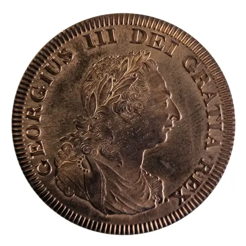 Crown above crossed sword and sceptre, between thistles, surrounded by the legend. Date |