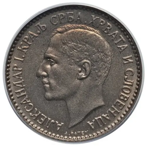 | Legenda del dritto | АЛЕКСАНДАР I. КРАЉ СРБА, ХРВАТА И СЛОВЕНАЦА A.PATEY (Translation: Alexander I, King of the Serbs, Croats, and Slovenes) |
