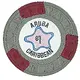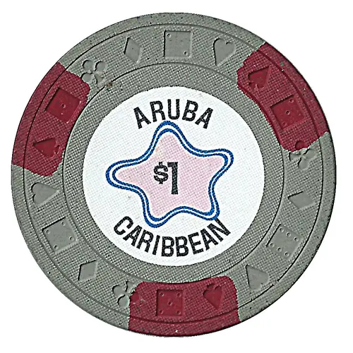 | Descrizione del dritto | Three red stripes on a gray poker chip. Dice and card suits around the outer edge. White center with stylized island with ARUBA CARIBBEAN around the island. $1 in center of the island. |
