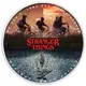 Mike, Dustin, Lucas, and Eleven on an adventurous bike ride, while the lower half features the eerie Upside Down, featuring Will and the ominous presence of the demogorgon. |