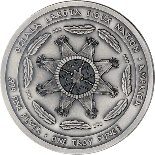 | Opschrift voorzijde | OGALA LAKOTA SIOUX NATION · AMERICA .999 FINE SILVER · ONE TROY OUNCE |