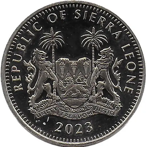 | نوشتههای روی سکه | REPUBLIC OF SIERRA LEONE UNITY FREEDOM JUSTICE PM 2023 |