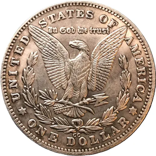 | توضیحات روی سکه | Eagle holding arrows and an olive branch, within wreath. Obverse of the 1 Dollar `Morgan Dollar`. |