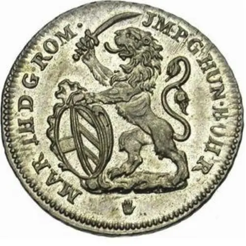 Описание аверса Lion of Brabant facing left, holding a sword and a shield part of Austria and part of ancient Burgundy. Mint mark below. Legend for MA (ia)•T (eresia)• (ei): (ratia)• (omanorum)•JM (eratrix)• (ermaniae)•HU (gariae)•BO (emiae)• (egina)•