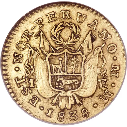 | Obverse lettering | EST · NOR-PERUANO · M · M 1 R · 1838 · |