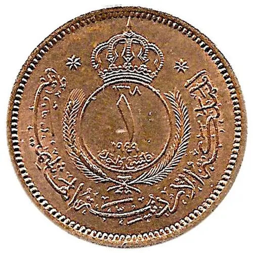 | Obverse lettering | ١٣٦٨ ١ ١٩٤٩ فلس واحد المملكة الأردنية الهاشمية (Translation: 1368 1 1949 One Fils Hashemite Kingdom of Jordan) |